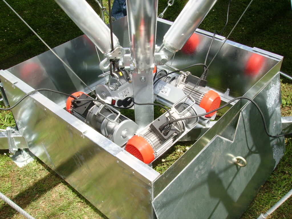 La base est en acier galvanisé et les mats en aluminium. Chaque mât est composé de 2 pièces (voire 3 si le client le désire pour des raisons de transport) les pièces les plus longues mesurent 3,70 M.